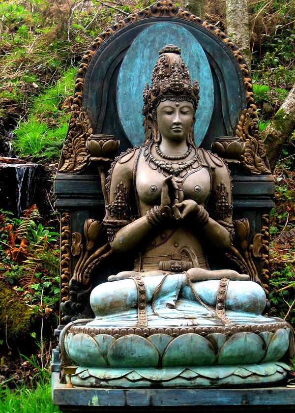 After reading his email, I found the original photo and credit on Wikimedia Commons: “Sanctuary and statue made by Sagaravajra, Buddhafield Green Retreat, 2006.” I hadn’t realized the statue was part of a much larger and breathtaking installation.